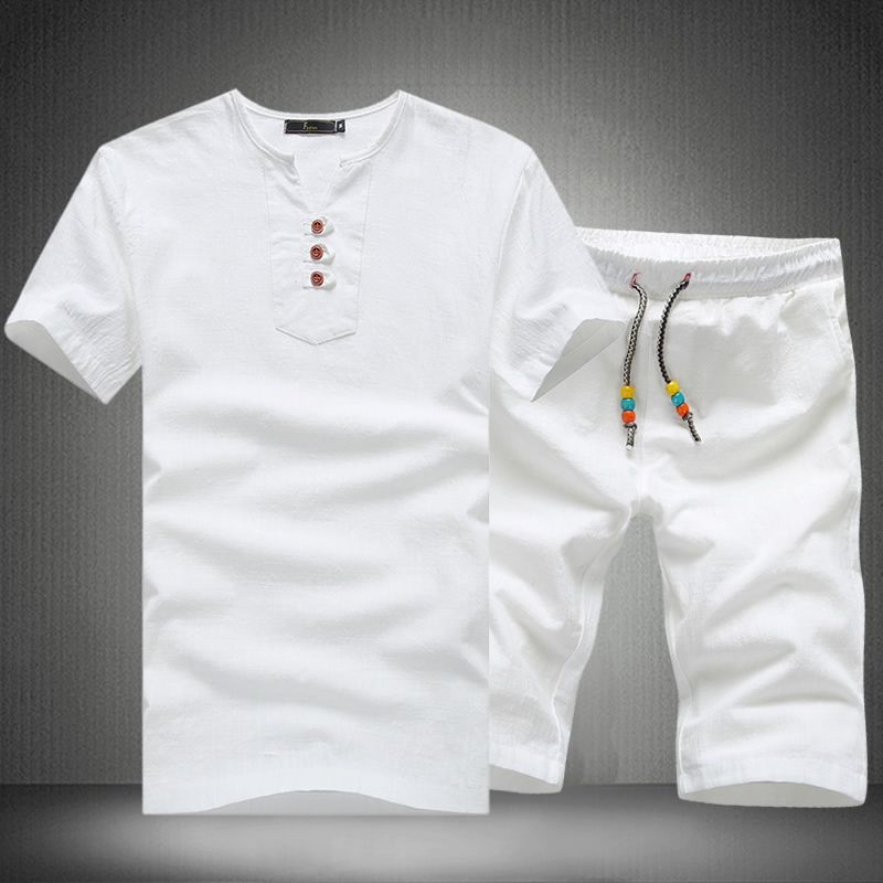 Men Summer Clothes Set Cotton Linen Suits Solid Color Short Sleeved Button T Shirt Shorts Large Size Comfort Casual Shorts Set Buy Men Summer Clothes Set Cotton Linen Suits Solid Color Short Sleeved Button